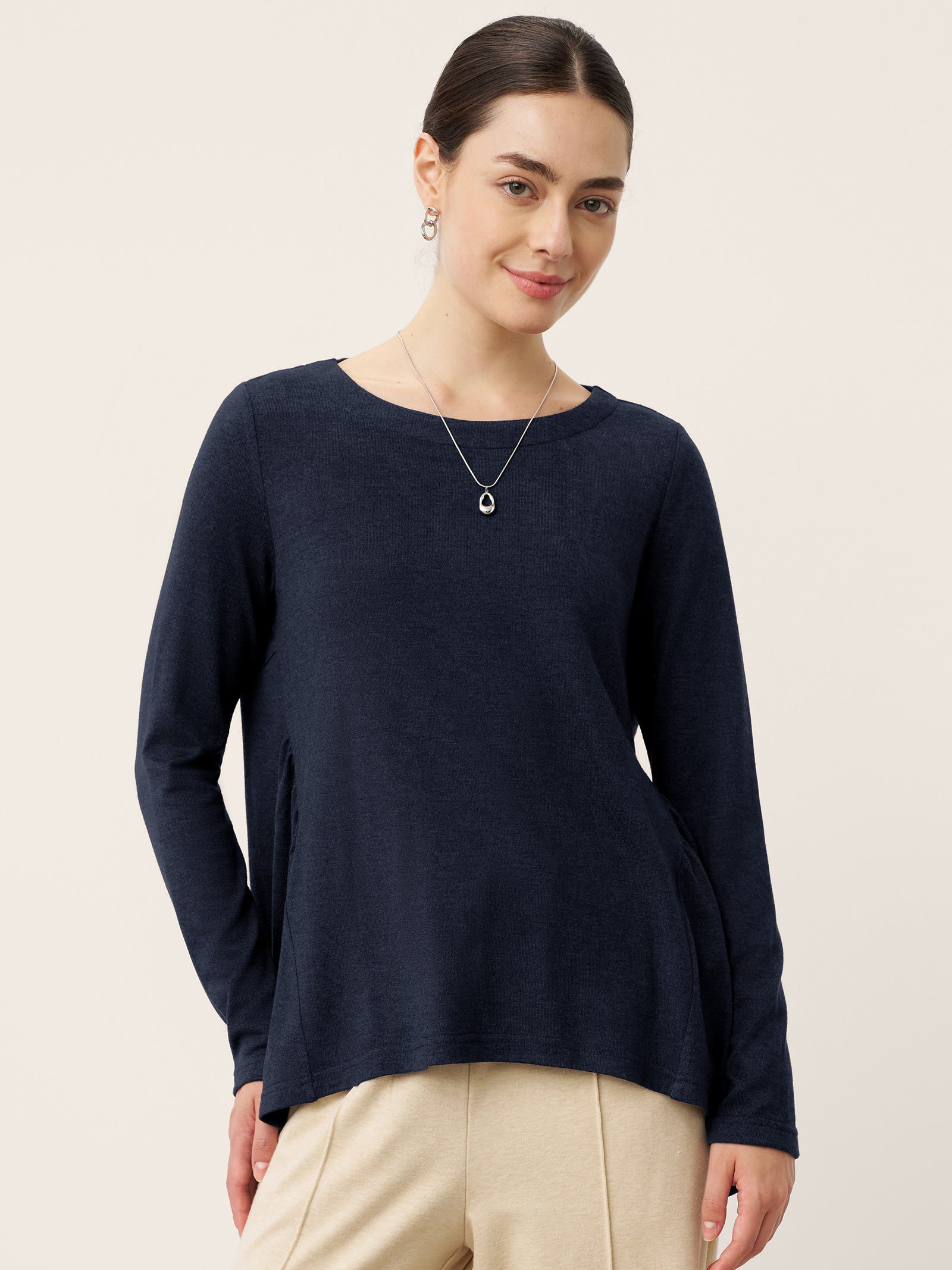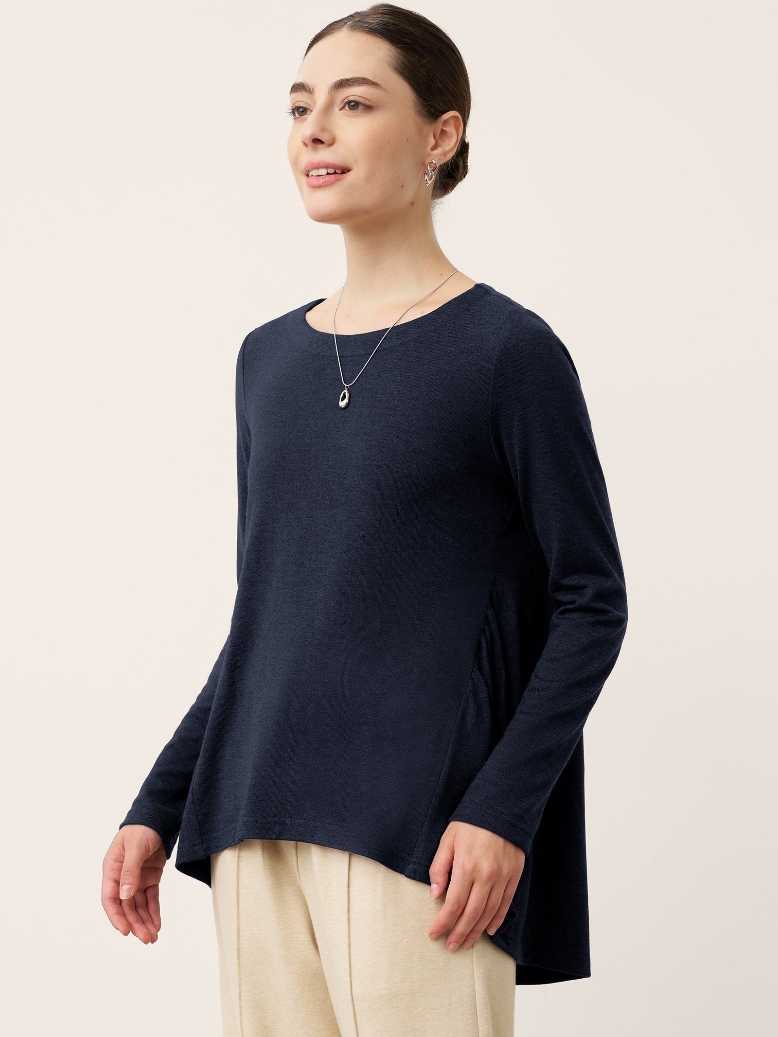 - Élégance du col bateau : L'encolure intemporelle encadre gracieusement les clavicules, s'harmonisant avec les manches pour une couverture des bras sans couture