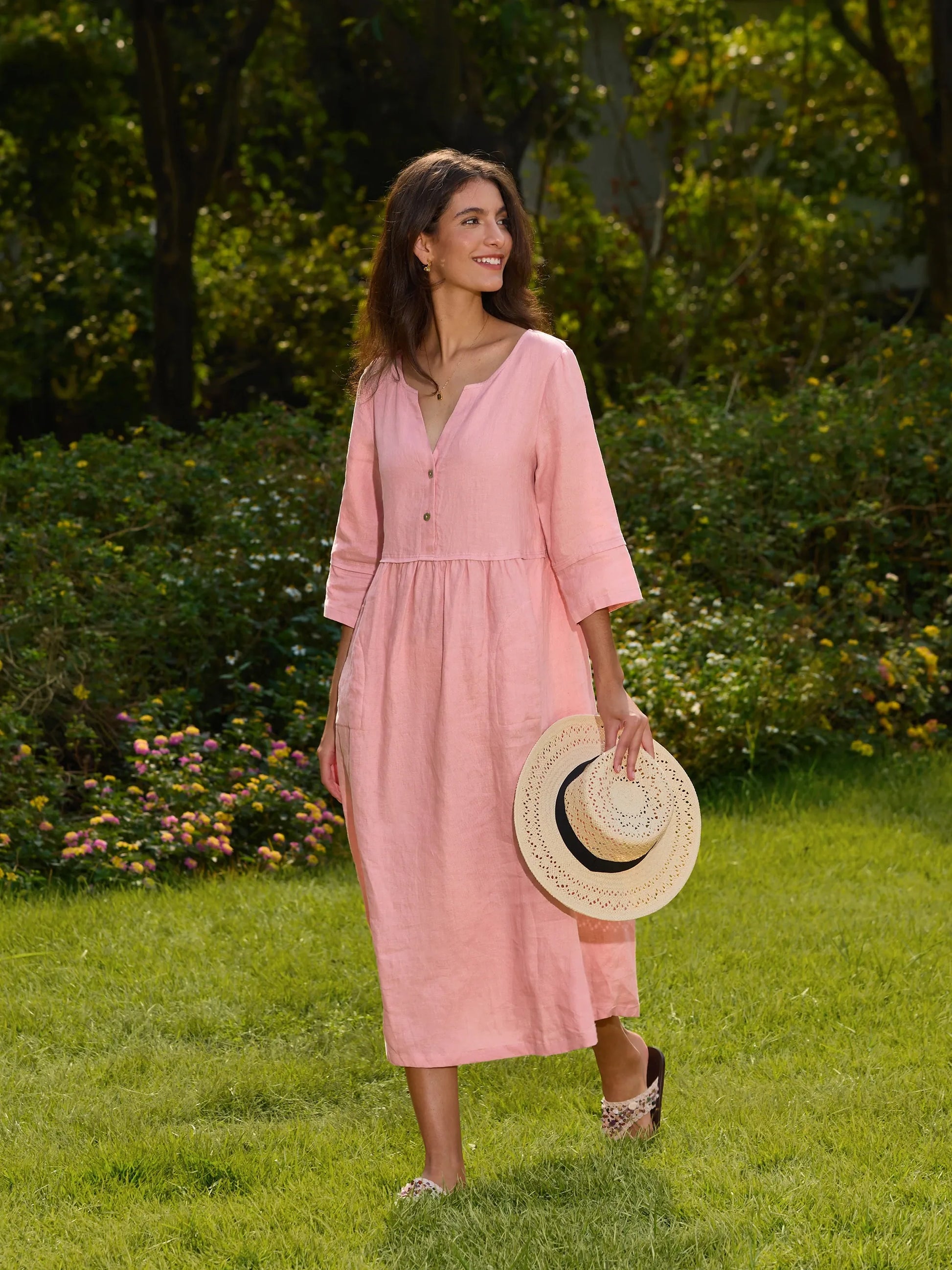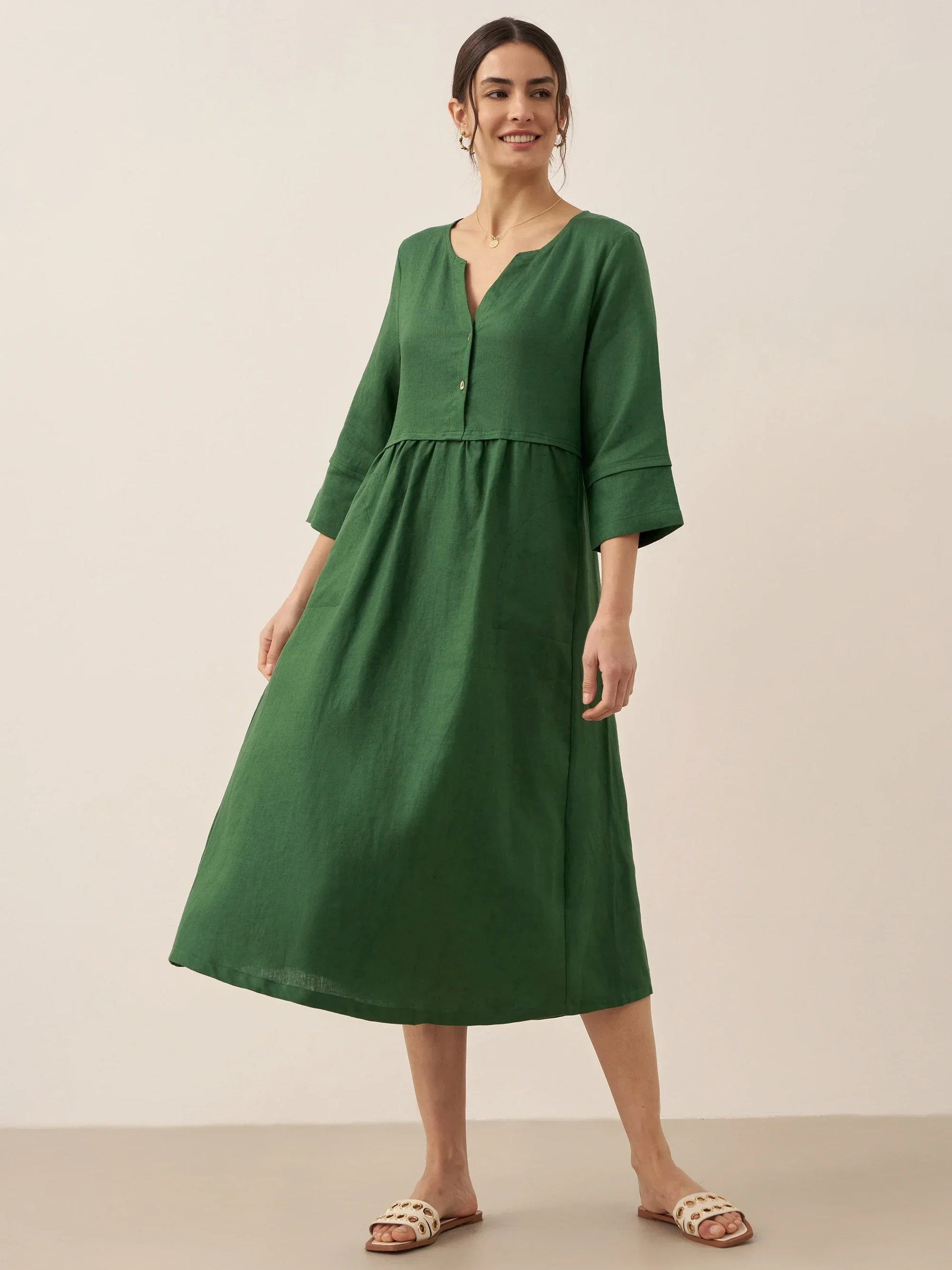 Robe longue ample 100% lin à taille boutonnée et froncée LUNA