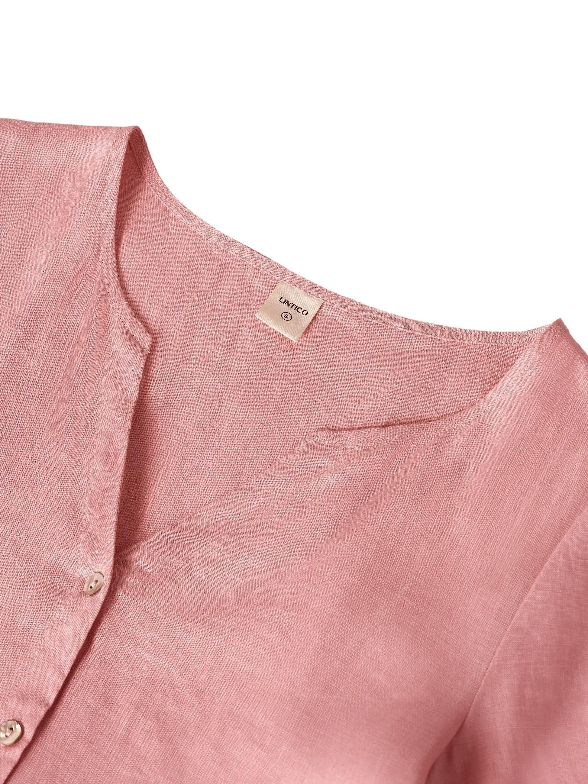 - Encolure en V rehaussée de boutons en coquillage faits à la main.